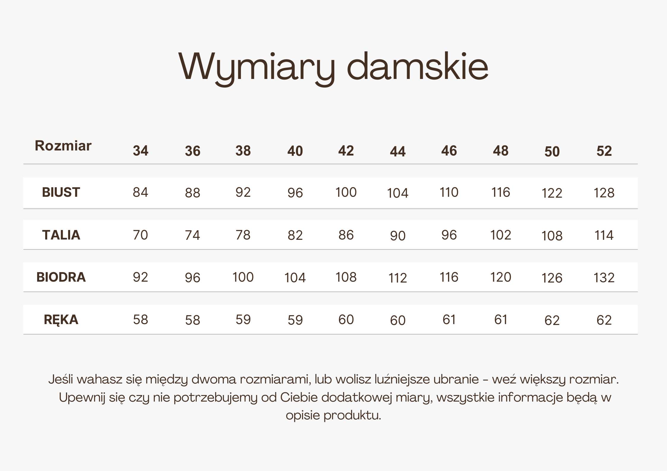 - możesz podać długość ręki, wówczas rękaw bedzie zrobiony pod wymiar