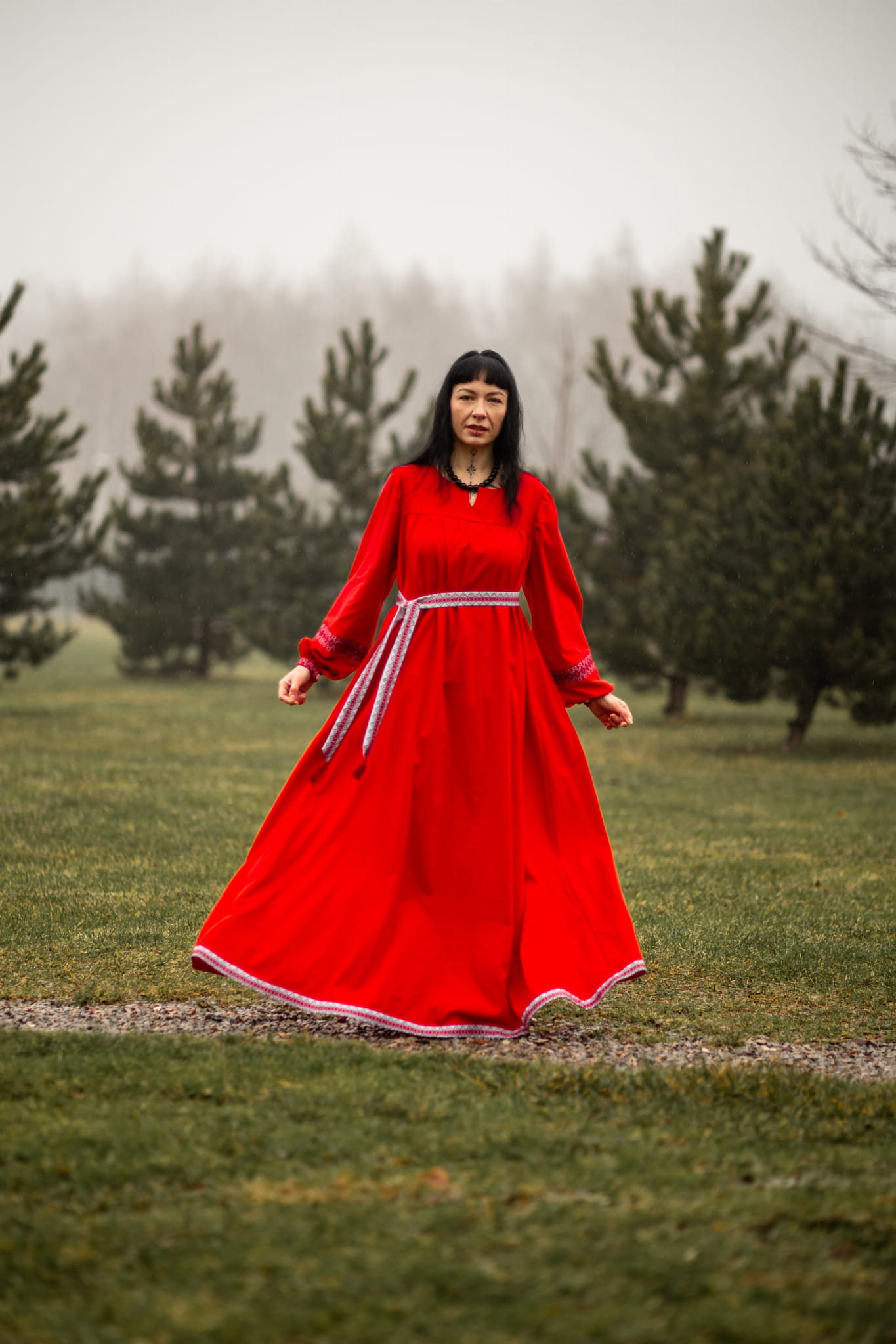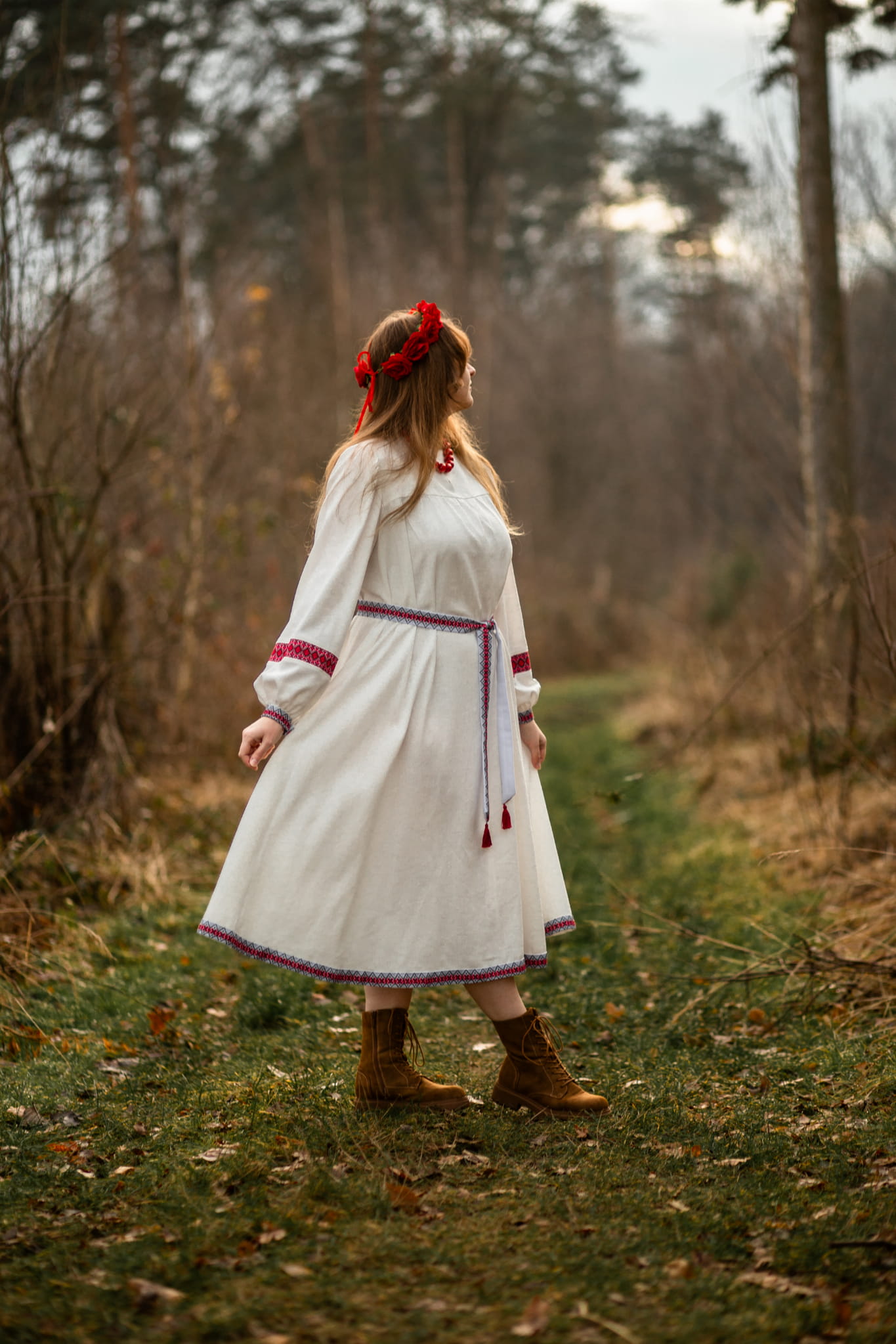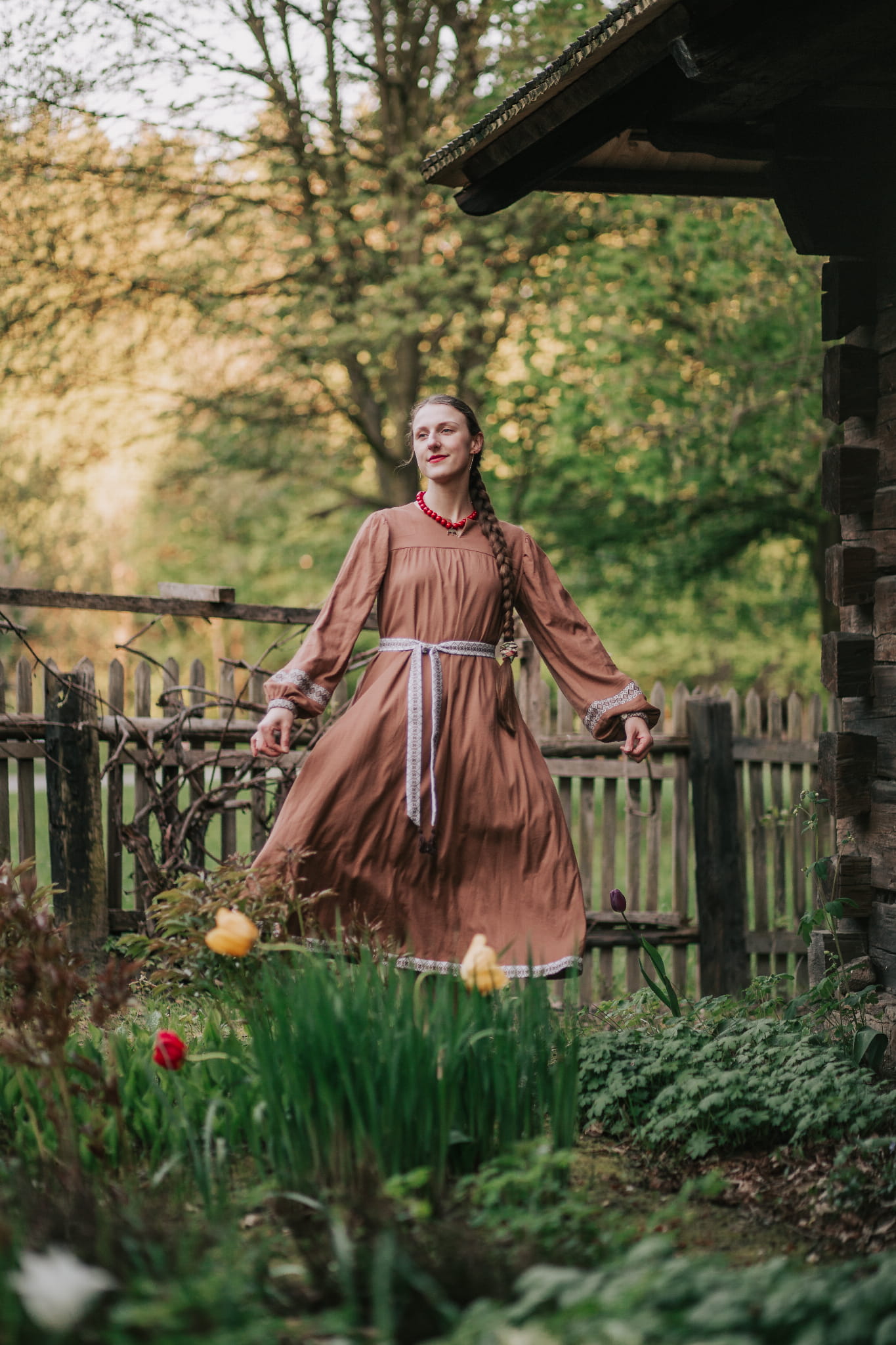 Słowiańska Suknia VELINA z marszczeniem nad biustem